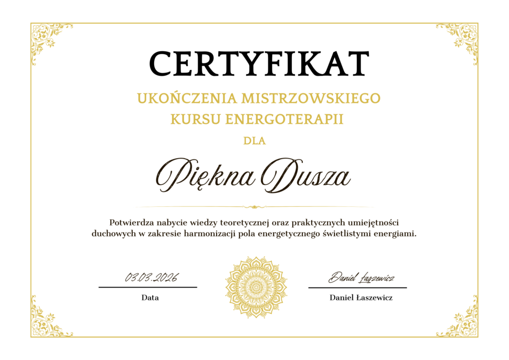 Po ukończeniu kursu będziesz gotowy(a) do samodzielnej pracy z świetlistymi energiami. Dzięki temu będziesz mógł/mogła wspierać innych w procesie transformacji, uzdrawiania oraz powrotu do wewnętrznej harmonii na poziomie ciała, umysłu i ducha.